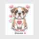 Charming illustration of a cute puppy with expressive eyes, featuring heart accents and a sweet message.