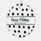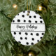 Black and white Happy Holidays personalised Christmas ornament. Classy modern business cards wishing customers and clients Happy Holidays.
