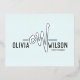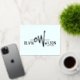 The background is a pastel blue colour! Two big alphabets are the main logo and done in a fun font. The initials have 2 short line elements on either sides of it and is adorned with the full name below it horizontally. There is a space to give your profession just below the surname. On the back side top, the contact details for the business is given where email, mobile number and portfolio details can be shared. Next, on the back side bottom is the address of your business. It has 3 lines of address. And finally there is a line element which separates the 2 details area aesthetically.