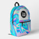 Create your own backpack with this cool template. Make your own personalised Business Logo and Text Holographic Printed Backpack. A unique and trendy accessory that combines personalisation with cutting-edge technology. The bag features a holographic rainbow wave design, making it eye-catching and visually appealing. The name of the owner is printed on the backpack, adding a personal touch that sets it apart from other backpacks. The backpack is made with durable materials that provide protection for books, laptops, and other essentials. It also has adjustable straps and multiple pockets for organisation. Overall, this backpack is a stylish and functional choice for anyone looking to make a statement and showcase their name in a creative way.