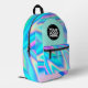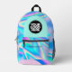 Create your own backpack with this cool template. Make your own personalised Business Logo and Text Holographic Printed Backpack. A unique and trendy accessory that combines personalisation with cutting-edge technology. The bag features a holographic rainbow wave design, making it eye-catching and visually appealing. The name of the owner is printed on the backpack, adding a personal touch that sets it apart from other backpacks. The backpack is made with durable materials that provide protection for books, laptops, and other essentials. It also has adjustable straps and multiple pockets for organisation. Overall, this backpack is a stylish and functional choice for anyone looking to make a statement and showcase their name in a creative way.