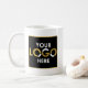 A "your logo here" design placeholder which can be replaced with your personalised custom business logo. A great design perfect for business promotional gifts, employee gifts and marketing and branding. Simply upload your custom logo, QR Code and create your own custom business logo coffee mug.