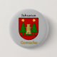 Spanish surname Camacho historical arms Pin-back Button. First name text is fully customisable. Change the colour of the background, it's customisable also!  Is your name of Spanish origin? We can research your name for you and provide pin-back buttons with your family shield here on Zazzle! Just ask us. Great to display your family heritage, identify others at family reunions, or give as a gift.
