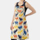 This apron is ready to be personalised with the name of your favourite cook or baker. It features an all over pattern of cute cartoon camels in shades of orange, yellow and blue against a sand or cream coloured background. Your name appears in dark blue print lettering.