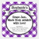 Add your name to this grape or other jelly /jam Personalised Canning Jar Label, with a super cute gingham check background and your name in a waving banner. Looks similar to a brand name jelly or jam jar. Add your custom title and detail text along with optional photo to this canning jar label. Perfect for those homemade goodies! Also customise the background colour by (after entering your information), click "customise it", then "edit" and "background". Use large sticker for side of standard jar, or wide-mouth jar lid, and use small sticker for regular lids.