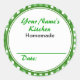 These personalised canning stickers will fit on top of your glass jam, jelly, and preserves jar lids. They have an image of a green chequered border pattern.