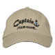 A dynamic personalised Captain cap in black style embroidered hat sure to make an impression on, or off the boat. Make this lifesaver anchor design embroidery as unique as you are with your name, your location, or your boat's name.