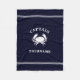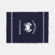Personalised captain nautical crab fleece blanket. Blue and white.
