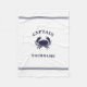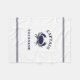 Personalised captain nautical crab fleece blanket. Navy blue on white background.