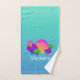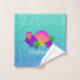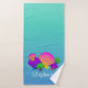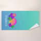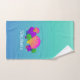 Brighten the day with this lovely personalised bathroom towel set featuring vibrantly coloured pink, yellow, blue, purple, green and orange scalloped seashells with floating bubbles on a turquoise aqua background... Paradise!