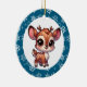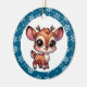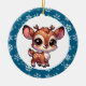 Personalised chibi reindeer Christmas ornament. Snowflake background. Add a name in the personalise area.