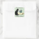 Personalised Cat and Books Bookplate Sticker against a lime green wavy background, with customisable text.