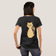 Original personalised cat message on black Women T Shirt. The design is a orange cat silhouette. Both texts, on the front and back side can be customised.