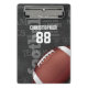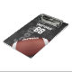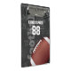 A modern American football grid iron design featuring a football on a chalkboard typography background with football terminology in the background. The design features customisable text for the name and number of the football player or grid iron fan. This design has been made in part with graphics licensed by Graphics Factory.