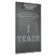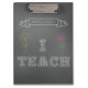 Chalkboard look clipboard with chalk style text that reads I Teach, two doodle flowers of pink and yellow with green stems and leaves, and a chalkboard banner that you can customise with your name! This chalkboard clipboard is great for teachers of elementary school, preschool, even high school!