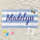 Personalised Chambray Blue Striped Script Name Beach Towel