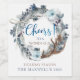 Beautiful holiday wine bottle label with ability to personalise text for Christmas or New Year message. Gorgeous watercolor blue floral holiday wreath with "Cheers" phrase inside in blue watercolor Script typography. Four text areas with ability to customise message as you like, our options are merely a suggestion, feel free to customise label to suit your needs. Part of our "Blue and Silver Watercolor Christmas" collection with a variety of coordinating products available.
