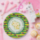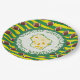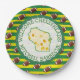Wisconsin Party Paper Plates with shape of Wisconsin in swiss cheese and footballs.