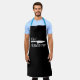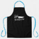 Cool Customisable Personalised Black Chef Mens Womens Apron. Displayed is black chef apron with cool knife design and customisable chef name in white letter print. Apron colour, strap colours are customisable to suite your needs to your personal taste and needs. The graphic of chef knife is provided in two black and white colours to accommodate light or dark aprons.