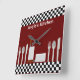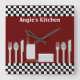 Personalised Black and White Chequerboard Kitchen Utensils Clock