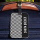 A custom luggage tag that features a classic black and white chequerboard pattern. The luggage tag can be customised with your name on the front. This product makes a great gift idea for any occasion.