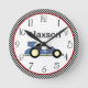 Up for sale is this "Race Car" clock. Complete your child's room with this adorable clock. You must change the name yourself by clicking on the customise it button. You can also change the number on the race car if you wish.