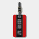 Personalised Cherry red travel luggage tag | elegant style. Classic black and red stripe design with white monogrammed name intitial letters. Elegant gift idea for men and women