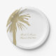 Personalised chic beach wedding paper party plates with exotic palm tree design. Neutral tone colours.