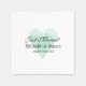 Personalised elegant aqua green heart wedding napkins. Chic paper napkins with turquoise blue vintage heart watercolor painting. Rustic look love symbol design with stylish script calligraphy typography. Make your own unique classy party napkins with name of bride and groom plus date of marriage. Customisable background colour and message, quote or saying like; Just married! Beautiful design for romantic beach theme weddings, fancy bridal party, country chic reception dinner party and outdoor garden BBQ's in the summer. Also nice for refined engagement or sophisticated anniversary party if you change the wording. Part of classy water colour marriage template set.