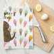 Personalised Chocolate Lab Licking Ice Cream kitchen towel for Labrador fans! Whimsy and cute Labrador Retriever Cartoon created by Naomi Ochiai from Japan. A cute and happy looking Chocolate Labrador enjoys licking Ice Cream. What a joyful time it is!!