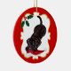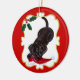 Personalised Chocolate Lab Puppy with Santa Hat Ceramic Ornament . Whimsical and cute Labrador Retriever Painting painted by Naomi Ochiai from Japan. An adorable Chocolate Labrador Puppy is playing with Santa Hat! Nice Christmas Gifts for Chocolate Lab fans!
