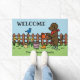 Personalised Chocolate Labrador Gardener Doormat for Labrador Fans! Cute and cheerful Chocolate Labrador enjoys gardening with his/her pal. Created by Naomi Ochiai.