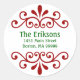 These holiday address labels feature a red scroll design and green text. Customise them with your address. Great for mailing Christmas cards!