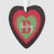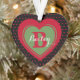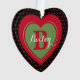 Folk Art design with pretty red hearts sprinkled over a black background, and features a large dual colour heart design in the centre, showcasing your your or your loved one's monogram and name. Also great for a pet. On the back you'll find a small heart "tattoo", with the words "Christmas 20xx".