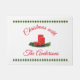 Personalised Christmas Candles design features the elegant image of a wreath of red Christmas candles as main design. Above image, displayed as an arch, are the words, "Christmas with". Below image reads "The (Family name)" Top and bottom of design is bordered with cute, green Christmas trees. Text appears in red decorative lettering.