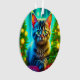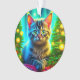 Pretty kitten sitting in front of lit up Christmas trees. Personalised Christmas ornament.