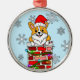 Hand drawn cartoon Corgi dog breed with Santa Hat on coming up the chimney Christmas stickers with personalised Christmas ornament.