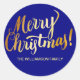 A very pretty gold script Merry Christmas looks chic and stylish on a navy blue background. Your name is written below. It's very easy to replace your own name with the template text. Use this to seal your Christmas card envelopes or to place on Christmas packages.