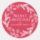 A very pretty White script Merry Christmas looks chic and stylish on a bright red background It is surrounded by a modern white wreath with a variety of branches, berries and cones.. Your name is written below. It's very easy to replace your own name with the template text. Use this to seal your Christmas card envelopes or to place on Christmas packages.