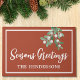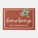 It is decorated with watercolor mistletoe on a rust background and says Seasons Greetings in stylish typography.