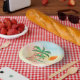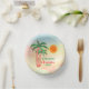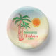 Invite family and friends to your Christmas themed celebration and decorate it with these island style paper bowls featuring hand drawn palm trees decorated with lights on a watercolor background.