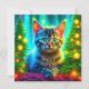 Pretty kitten sitting in front of lit up Christmas trees personalised Christmas card.