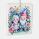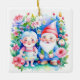 Pretty pink flowers surrounding Mr and Mrs Clause Gnomes personalised Christmas ornament.