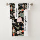 Personalised Christmas Nutcracker Ballet Bath Towel Set features holiday nutcracker ballet characters and symbols on black background with easy to personalise name template - get everyone in your family their own holiday bath towel set for Christmas!