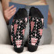 These are the cutest Christmas socks I've ever seen! I bought them for my housekeeper who is obsessed with clever printed socks and wears them daily. Needless to say she was thrilled with these! They are very soft and are a nice thickness so I know they'll be warm. I looked everywhere for Christmas socks but these were the cutest by far! They even put her name on them! The trees and snowflakes really stand out on these socks against the black background.