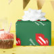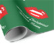 Personalised Merry Christmas Santa kiss wrapping paper. Cute Holiday design with red lips 8 bit pixel art. Funny Xmas gift wrap for men, women and kids (boys and girls). Personalizable with custom name and greeting. Green and red colours. Background colour is customisable.