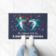 Personalised Christmas Sharks Funny Family Doormat. Fun way to create some smiles this holiday season and wish them a jawly good Christmas. Cartoon sharks with pineapple headdress and starfish bikini red lipstick, bushy eyebrows and a catfish goaty beard. Love heats and bubbles. All text front and back can be personalised using Zazzle's personalise and customise menu tools. We invite you to visit our Zazzle store, Life on Memory Lane, for matching products. Please contact us if you require any assistance.