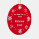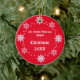 Change the background colour of this ornament to any colour you prefer. Simple but classy collectable tree trim has a border of snowflakes. The font style, and size can also be changed. Other ideas - you could put a couples names and add the number of the Christmas, for example, Lisa and Michael, First Christmas. The back of this ornament has been left blank so it can be further personalised if desired.