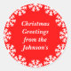 These stickers feature a white snowflake border and a custom Christmas greeting. The red background can be changed to any colour by customising this product.