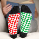 Socks: Cute Red / Green Christmas socks template with easily personalised name "Christmas" for your friends and family. You can simply add photos or more text over the chequered template.